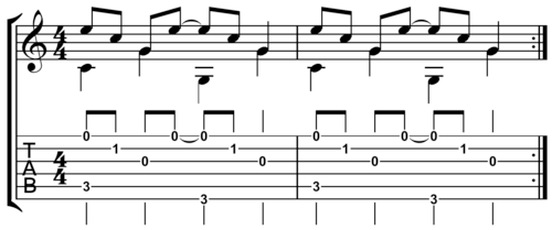 Vamp riff typical of funk and R&B.[6] Playⓘ